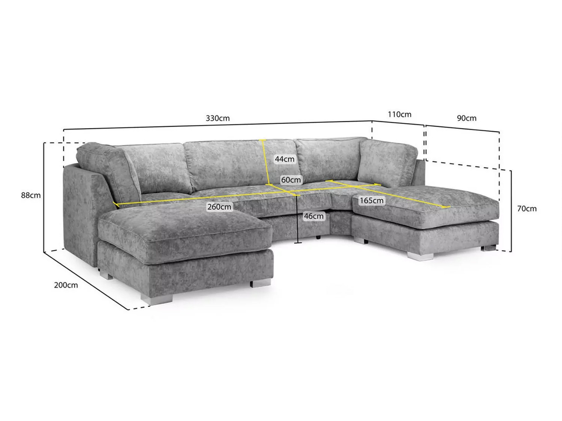 With expansive dimensions of 180x310x180 cm, the Bishop U-Shaped Sofa comfortably accommodates up to 7–8 people. Its spacious design is ideal for larger living rooms, creating a central hub for socializing, movie nights, or family gatherings.